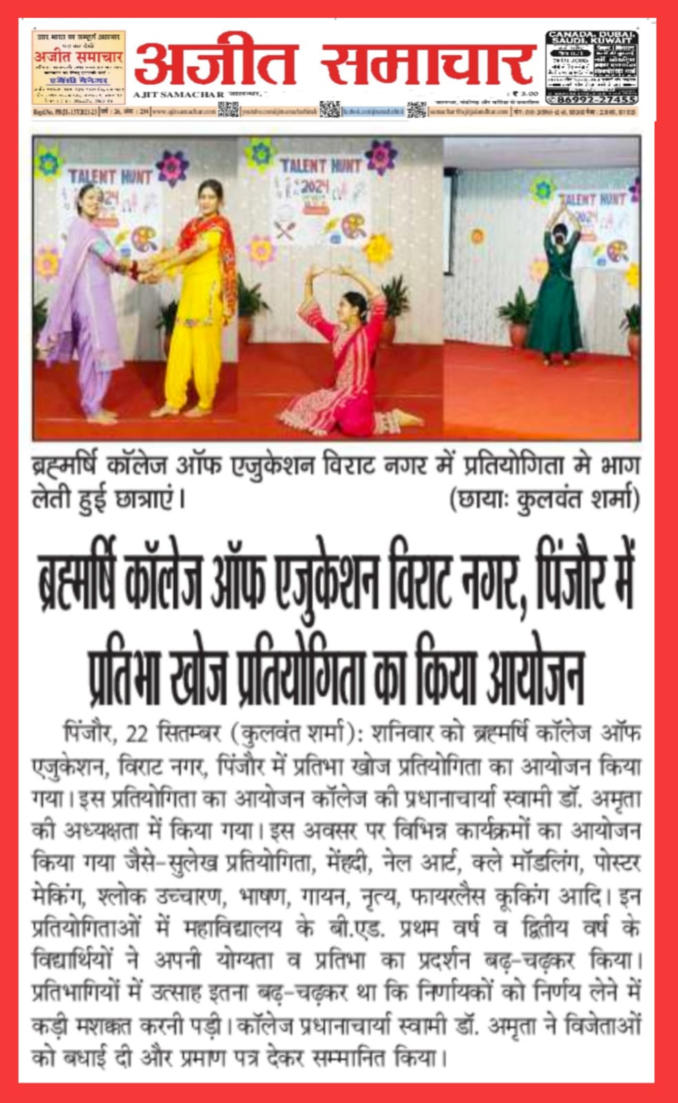 In Brahmrishi College of Education, we look at Education differently. For us, Education does not lie in the quantification of knowledge. But it lies in the quality of knowledge that helps to form the character of students through Wisdom , Love and Service. We are imparting education to the Teacher trainees of the Diploma in Education (D.El.Ed.) recognised by The State Council of Educational Research and Training and Bachelor of Education (B.Ed.) affiliated to Kurukshetra University, Kurukshetra.