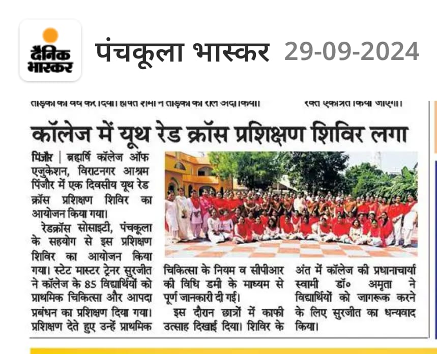 Organizerof first Aid Training camps by Red Cross at Brahmrishi College of Education.