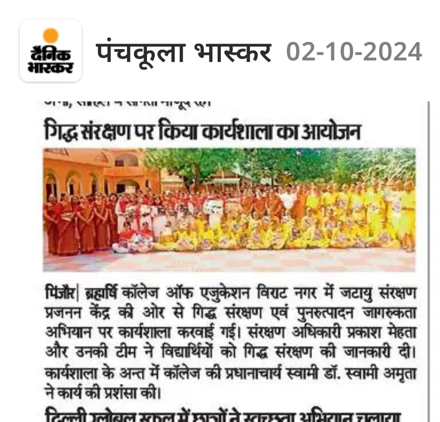 Organizer of the workshops on Vulture Conservation to Protect Environment at Brahmrishi College of Education.