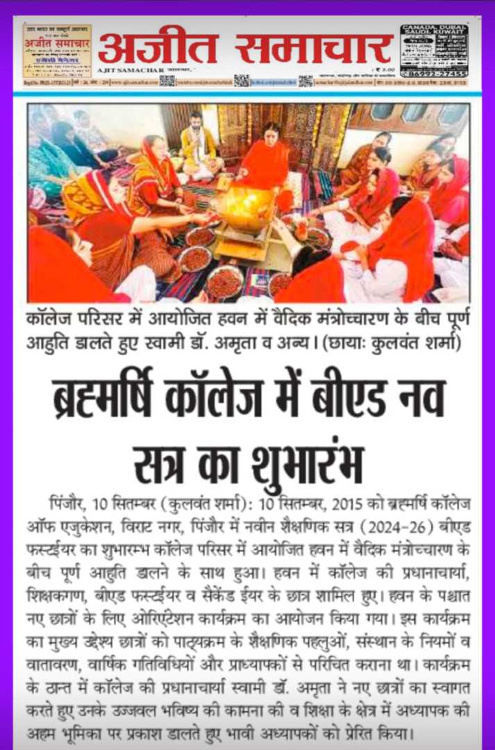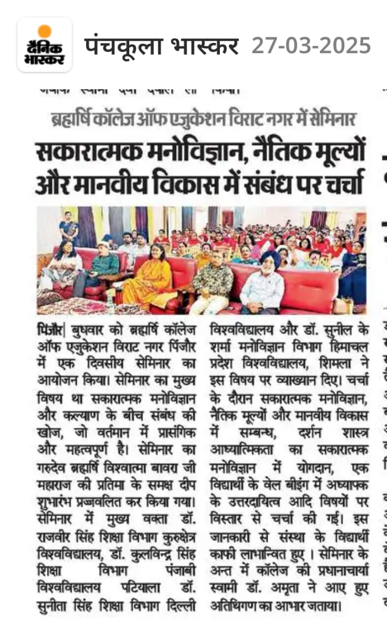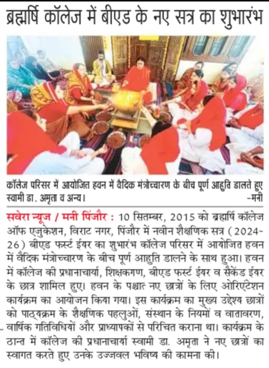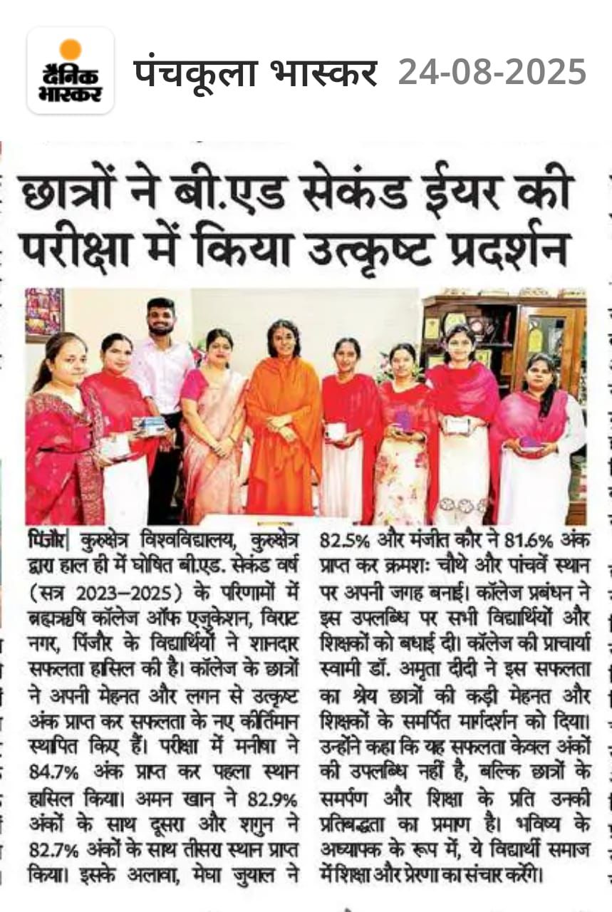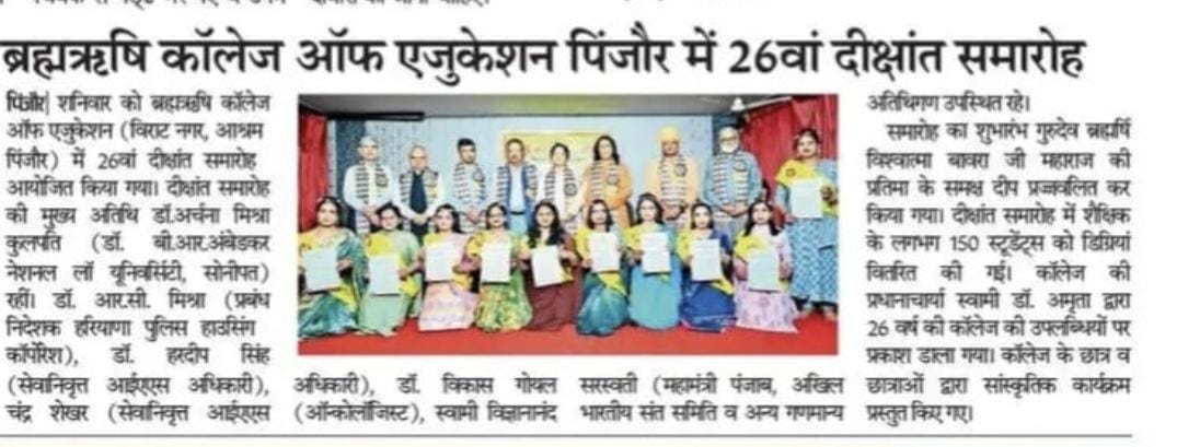 In Brahmrishi College of Education, we look at Education differently. For us, Education does not lie in the quantification of knowledge. But it lies in the quality of knowledge that helps to form the character of students through Wisdom , Love and Service. We are imparting education to the Teacher trainees of the Diploma in Education (D.El.Ed.) recognised by The State Council of Educational Research and Training and Bachelor of Education (B.Ed.) affiliated to Kurukshetra University, Kurukshetra.